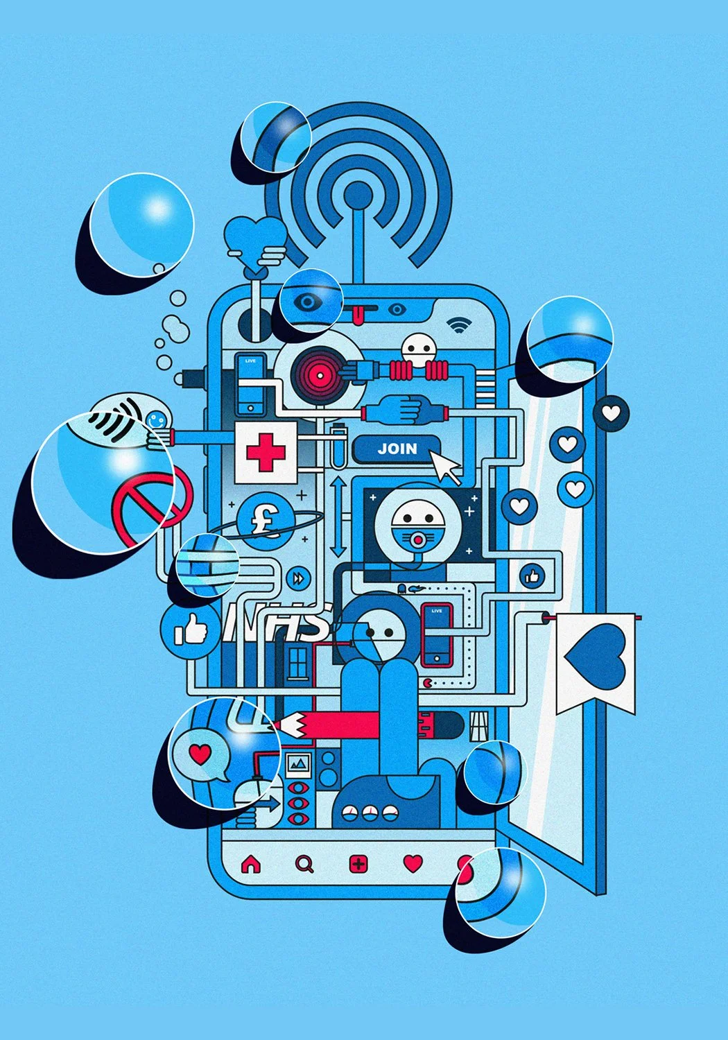 During lockdown, I was invited to create an illustration for The Insiders Zine — a publication showcasing how creatives were responding to life in isolation. My piece explores how, even as people spent more time indoors and online, technology could still open doors to opportunity and creativity. The illustration depicts a literal door opening within a phone screen, revealing a world of ideas beyond it — a visual reminder that connection and inspiration can thrive even in isolation.